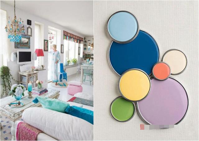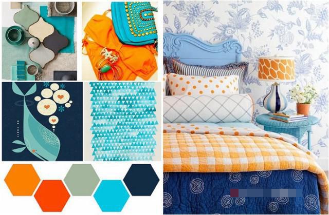 藍(lán)色與枚紅色、黃色搭配讓空間充滿時(shí)尚、青春活力,配以深藍(lán)色和白色讓空間沉穩(wěn)安靜下來(lái),比例很重要。