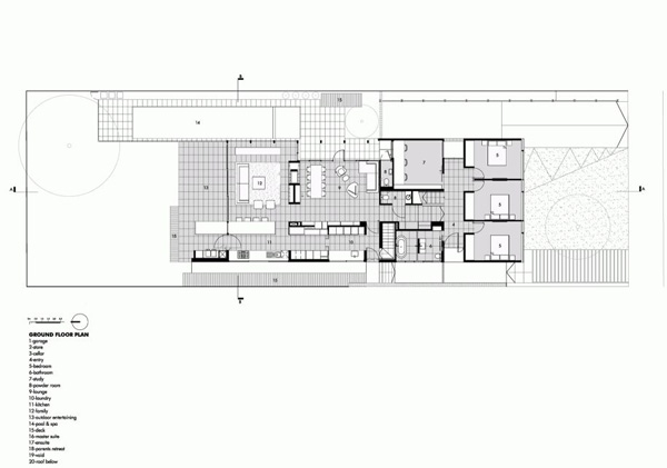 設(shè)計(jì)師以精簡的表達(dá)方式,完成了一件戲劇性的別墅建筑,該設(shè)計(jì)演繹出空間的靈活性,又不失去家庭生活的實(shí)用。 這個(gè)實(shí)用又美觀的住宅外觀平淡無奇,作為一個(gè)靈活的家庭生活空間,室內(nèi)和外部環(huán)境的界線用模糊的手法處理,使每個(gè)生活空間都和戶外相結(jié)合。 該建筑的精巧細(xì)致,大膽的直線形式,和植物相映生輝。房子的一側(cè)入口實(shí)用舊鐵路枕木做成,在地面形成一個(gè)有趣的路徑。